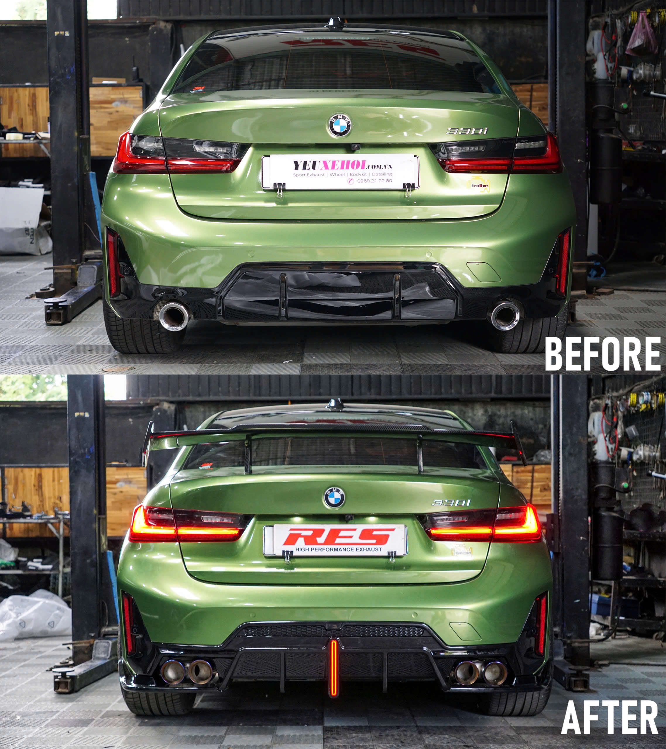 ☘️☘️☘️ BMW 330i M Sport LCI lên full hệ thống pô Res / Capo GTS / Lip trước + Lip lườn + Đuôi gió carbon M Performance .